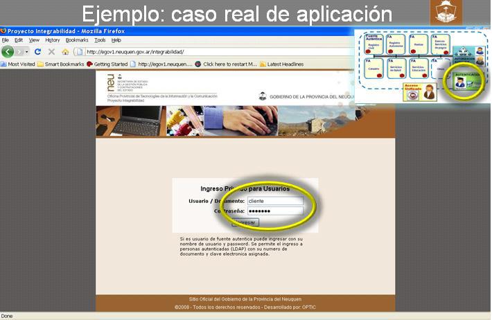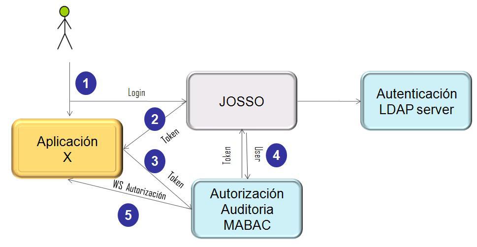 Para mostrar la flexibilidad y facilidad de la tecnología SOA para operar independientemente de las plataformas tecnológicas, se implementaron extensiones en el servidor Coordinador para poder operar en una instalación que opera con (JOSSO) Java Open Single Sign-On, como servidor de Autenticación. El (SSO) Single sign-on es un mecanismo de autenticación que habilita al usuario para acceder a múltiples aplicaciones web con una sola instancia de identificación. Aplicando una técnica de intercepción de los intentos de login de a las aplicaciones invocadas.