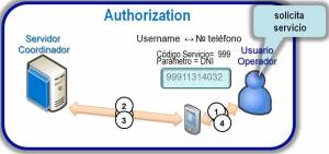 El operador del sistema (mesa de entrada) realizó esta operación de autenticación sobre el Servidor Autenticador, y esto le da derechos para acceder a determinados recursos de información entre los que se encuentran los requisitos del trámite. Si estos recursos están definidos (parametrizados) como recursos que requieren del consentimiento del involucrado (están condicionados a su consentimiento), entonces en ese preciso momento (cuando se los está solicitando) el Servidor Coordinador utilizando el mecanismo de 2 factores, enviará un mensaje al celular del involucrado para: