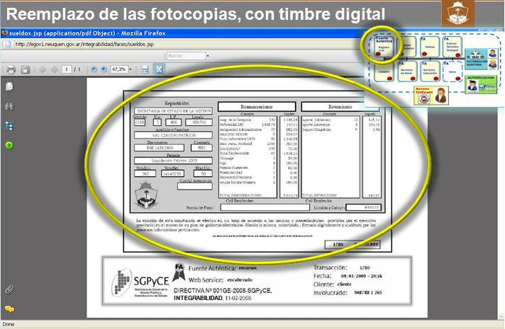 El siguiente gráfico muestra el resultado que logra la fase 1, pasamos de tener un modelo de interoperabilidad basado en papeles transportados por “ciudadanos itinerantes”, a una plataforma de interoperabilidad segura que le permite al ciudadano presentarse sin papeles y sólo con su identificación en la ventanilla del organismo donde debe realizar un trámite.