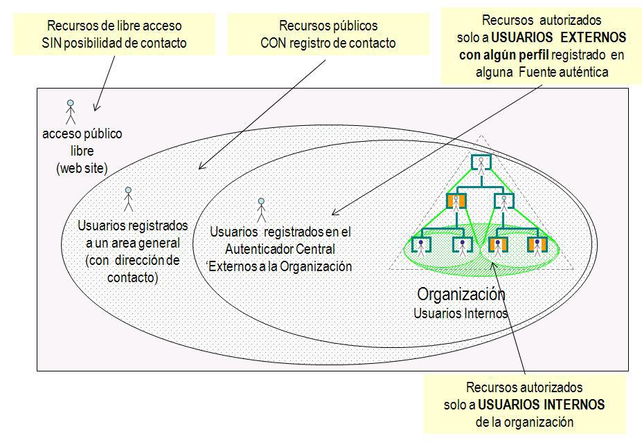 • Para un sistema X los usuarios externos son y se agrupan según distintos criterios de pertenencia que se definen en función de uno o varios registros de fuente auténtica de otros sistemas externos u otros módulos de registración internos.