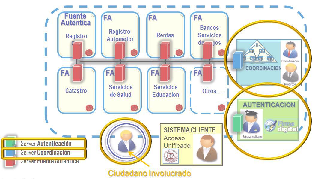Tecnológicamente: Se materializa por dos piezas de software que componen el Server Fuente Auténtica: